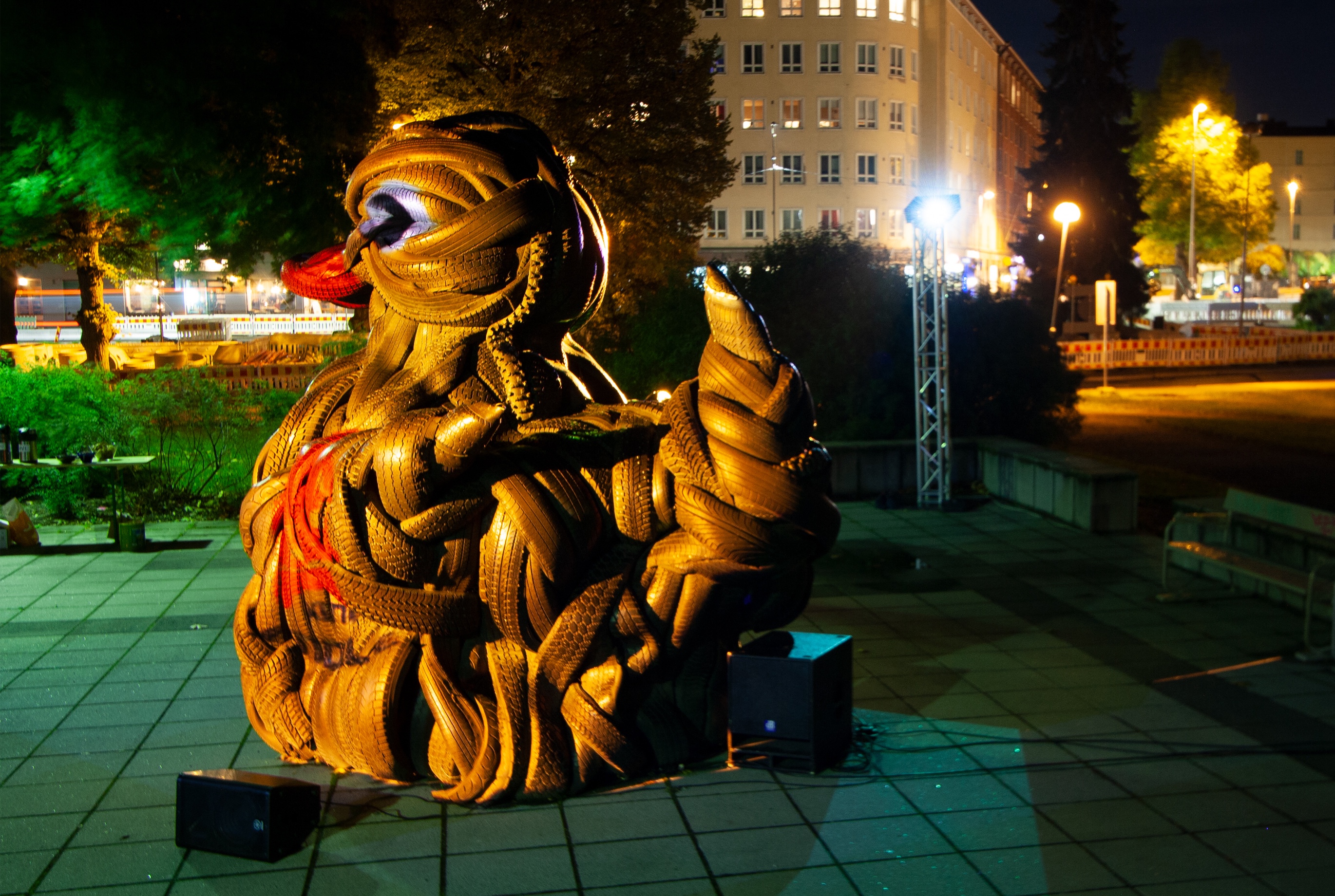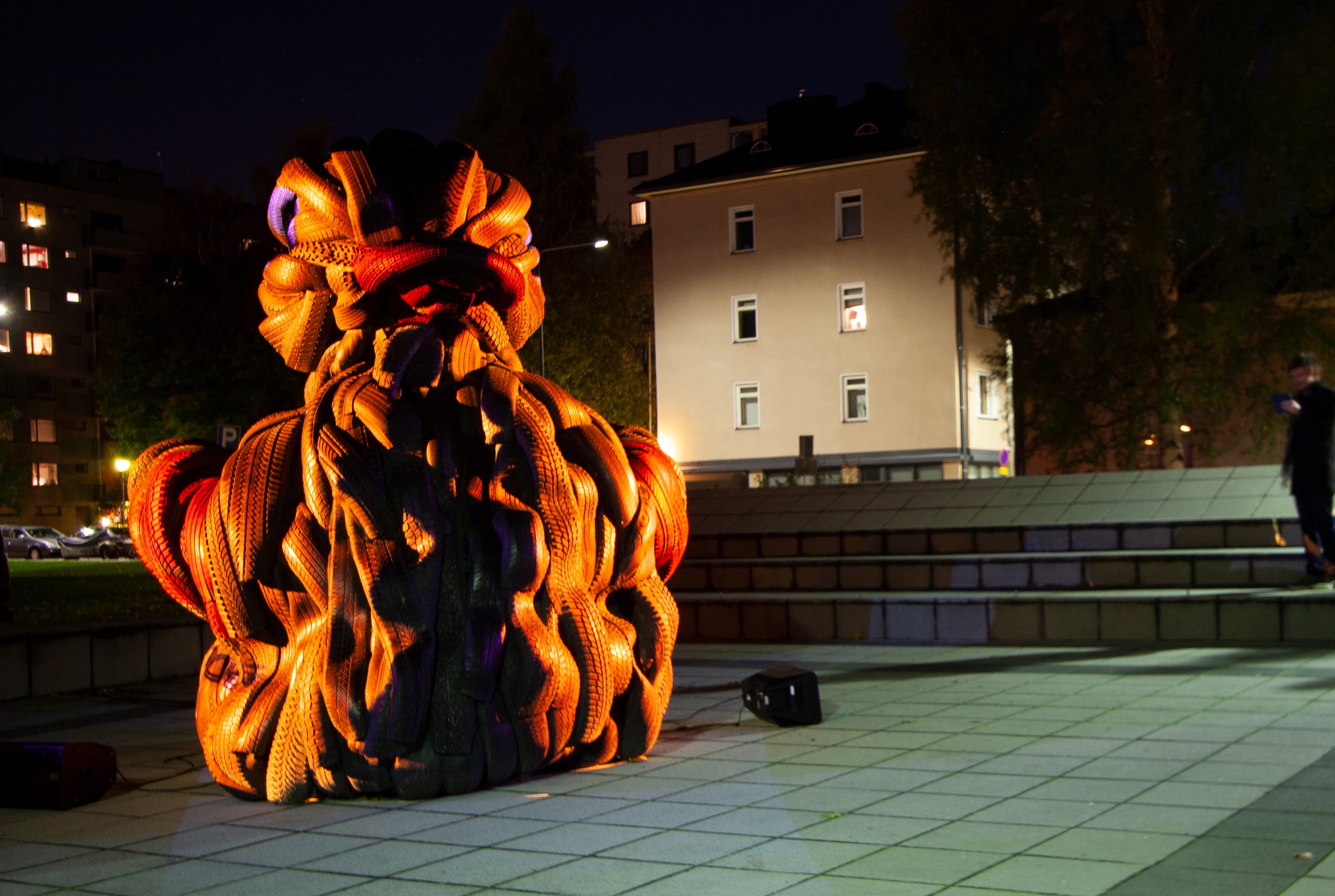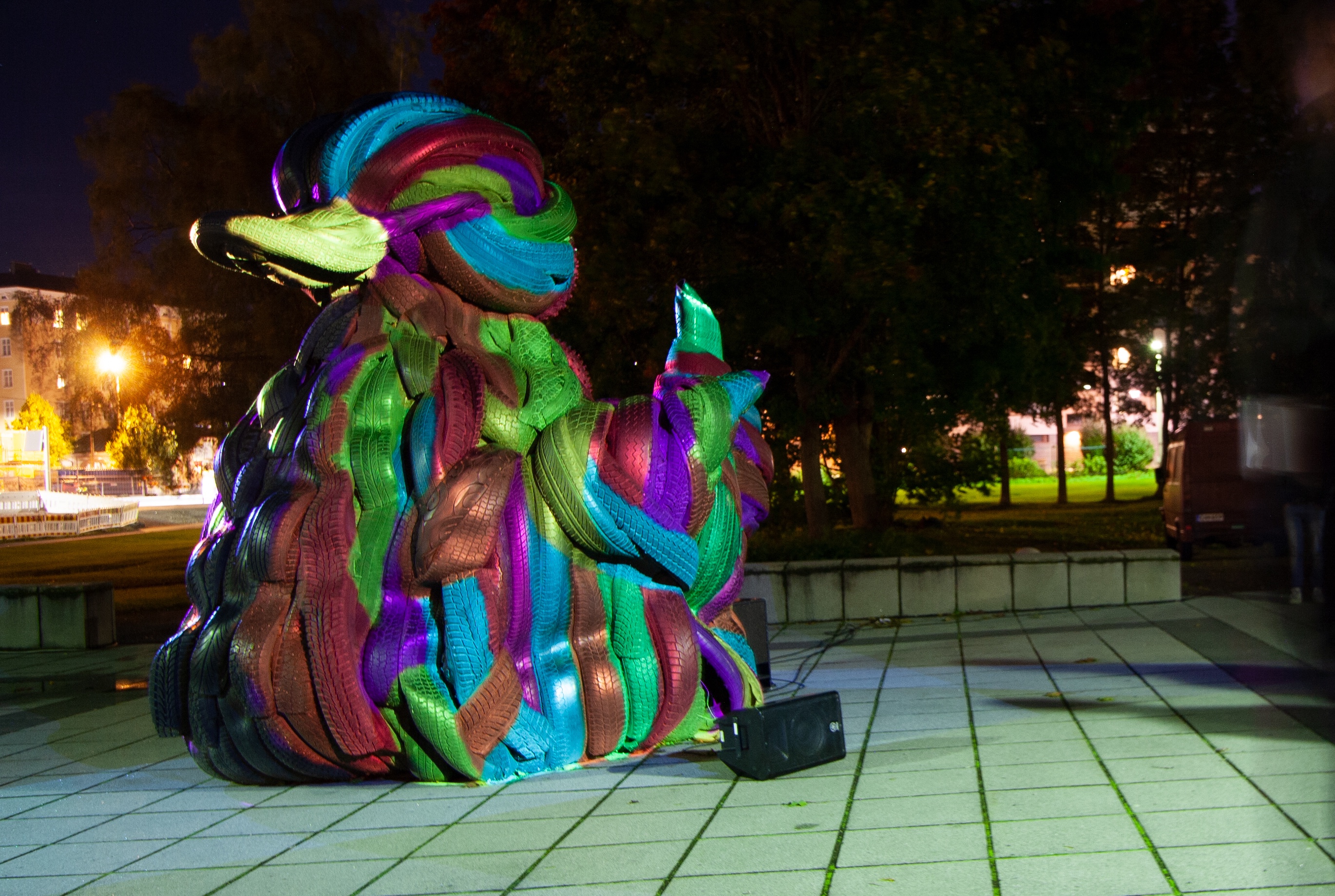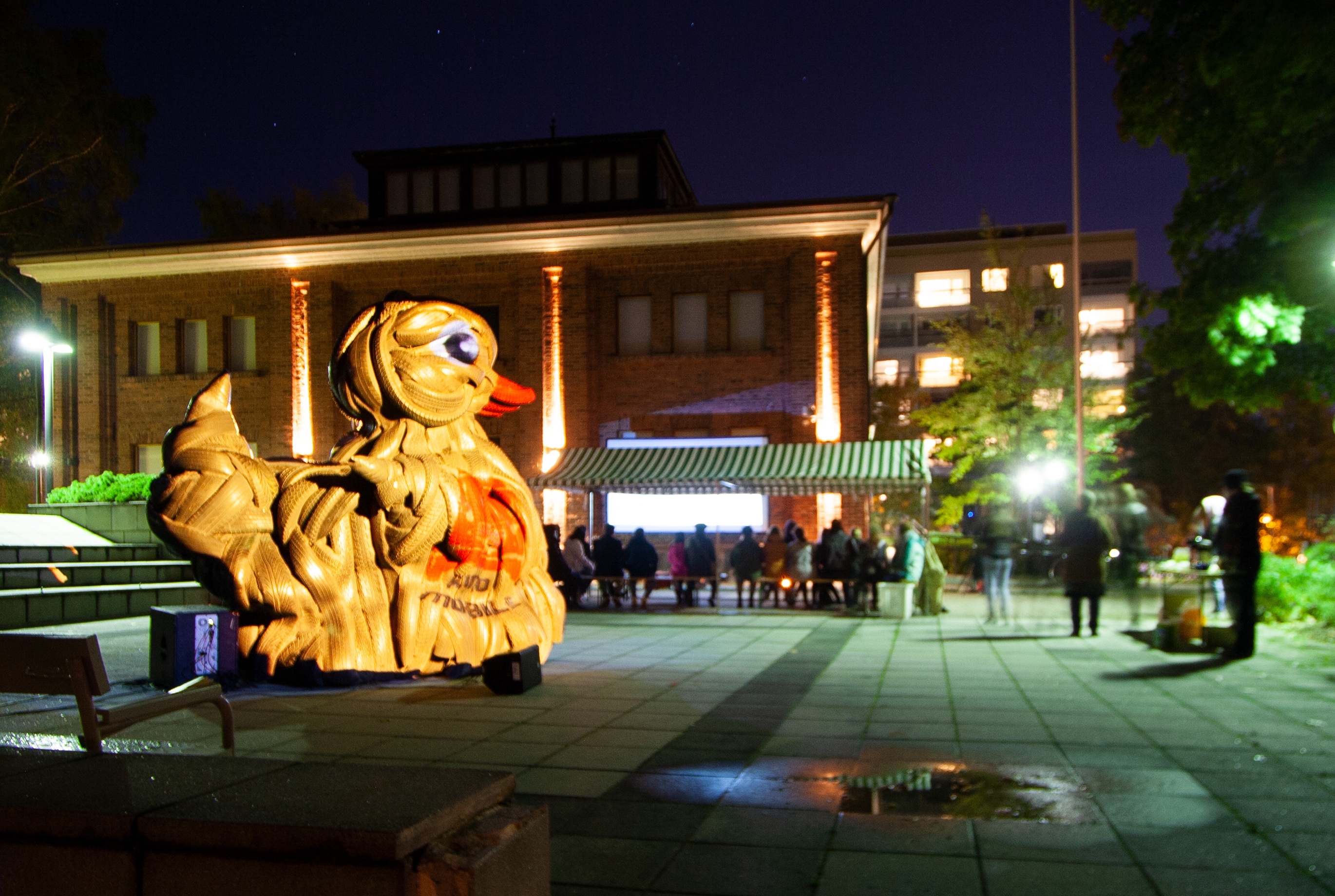 Synchronised projection mapping made on both sides of the Rubber duck sculpture by Villu Jaanisoo placed in the yard of the Tampere Art Museum. Duration 2.50. Was performed during videokanava screening event on 22.09.2018.