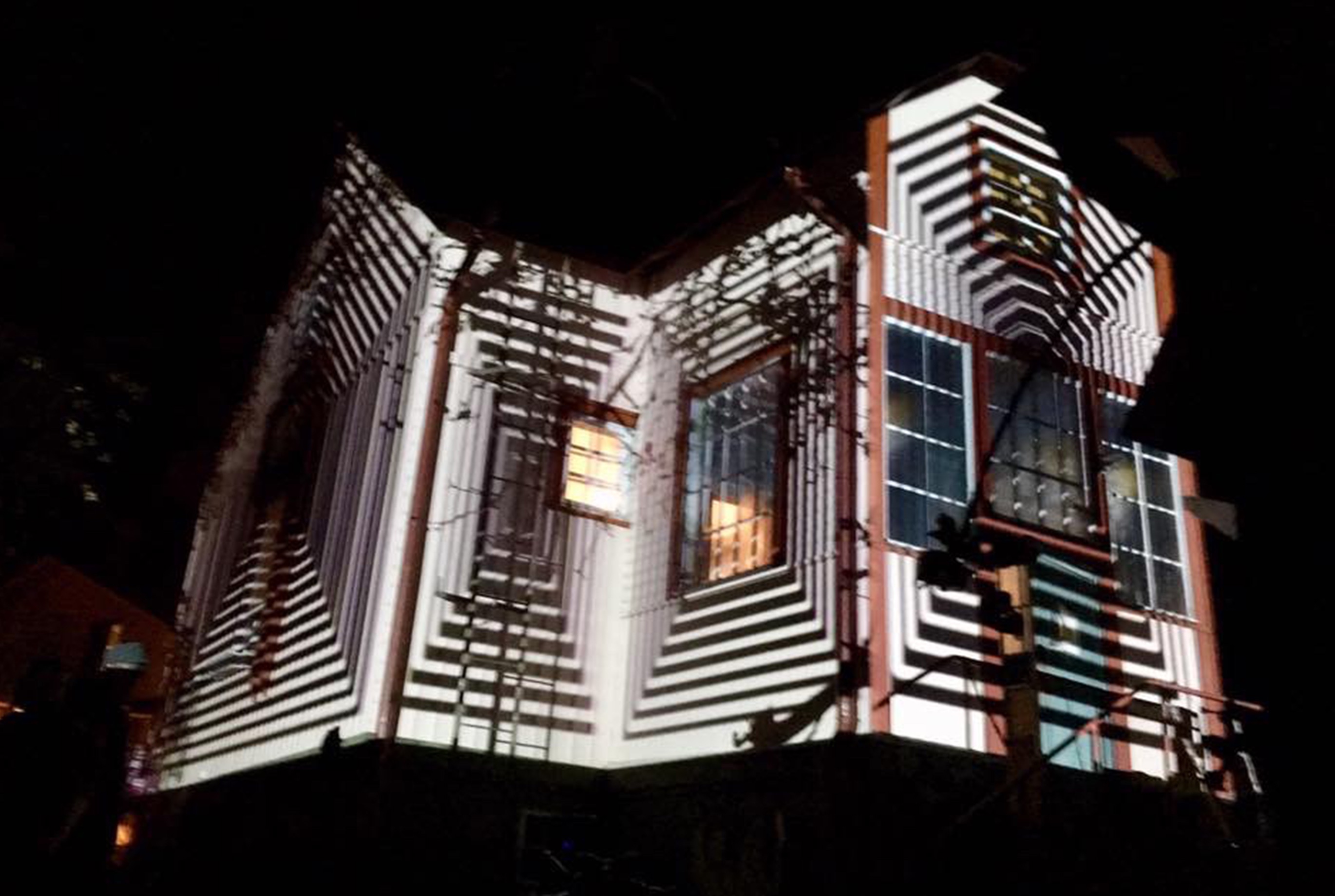 Technical aspect of this mapping was to explore the building surface usage with small opaque areas and projection on it from the short distance.
