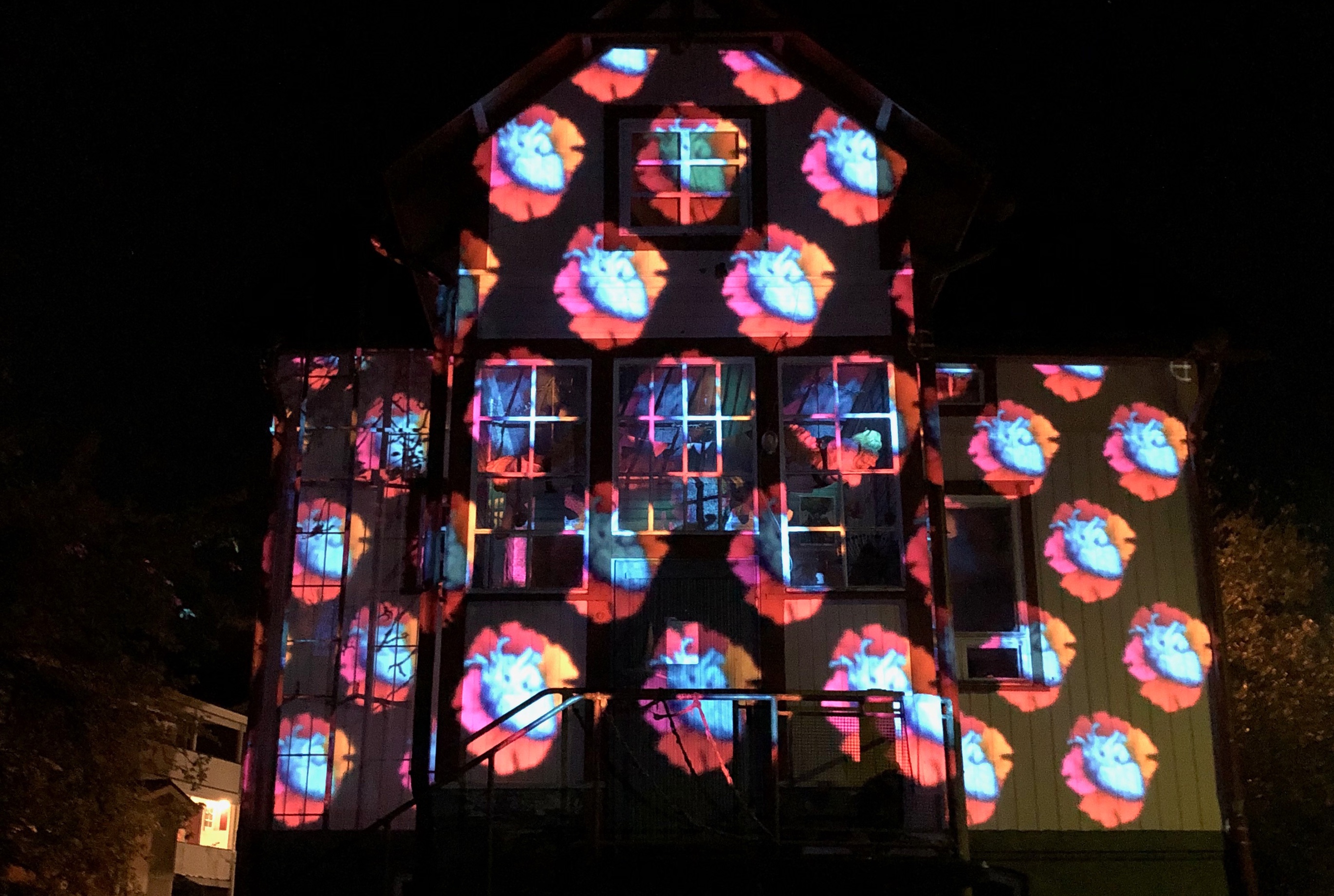 Projection mapping covering half of the art centre building Hirvitalo in Tampere. Duration 3.00. Was performed during videokanava screening event on 06.10.2018.
