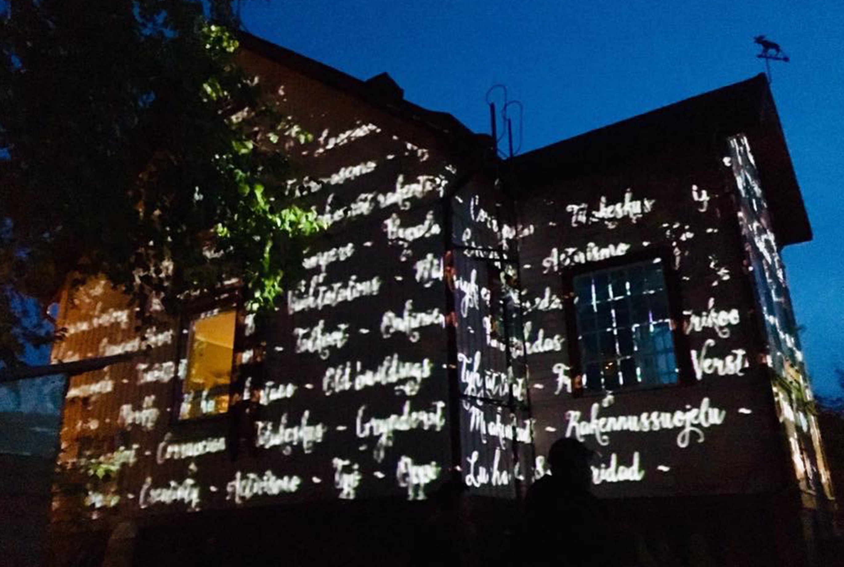 The animation represents the birth of the idea as a sparkle, developing and structuring it like lines and elaboration through the colour to the final wrap in words. Words used in the mapping picked from the three languages: Finnish, English and Spanish and related to the art, creation process and saving historically important buildings.